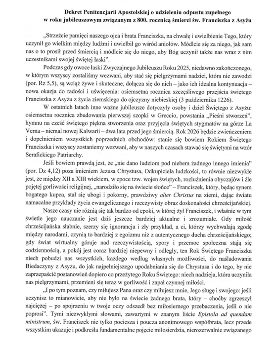 do przekazania wiernym w niedzielę 1 lutego 2026 r.