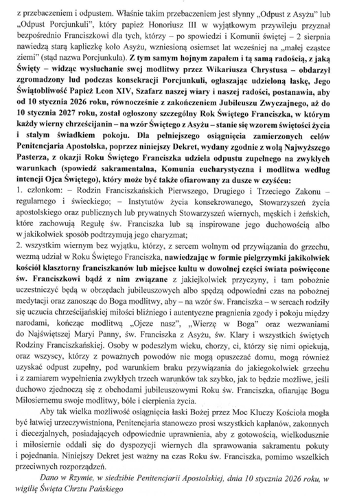 do przekazania wiernym w niedzielę 1 lutego 2026 r.