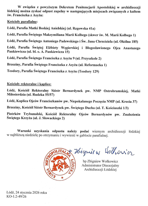 Komunikaty Kurii Metropolitalnej Łódzkiej