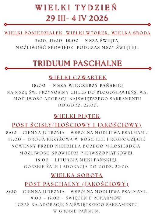 3. W Wielki Czwartek i Wielki Piątek kancelaria parafialna będzie nieczynna.